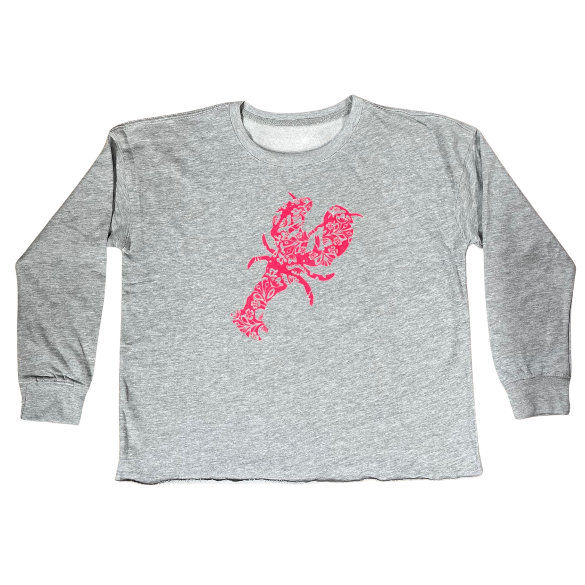 Get ready for some serious lobster love with our Lobster Crewneck! Featuring a raw edge, this crew neck sweatshirt sports a vibrant hot pink floral lobster perfect for your beach days and lobster-themed adventures. Don't be crabby, grab one now!