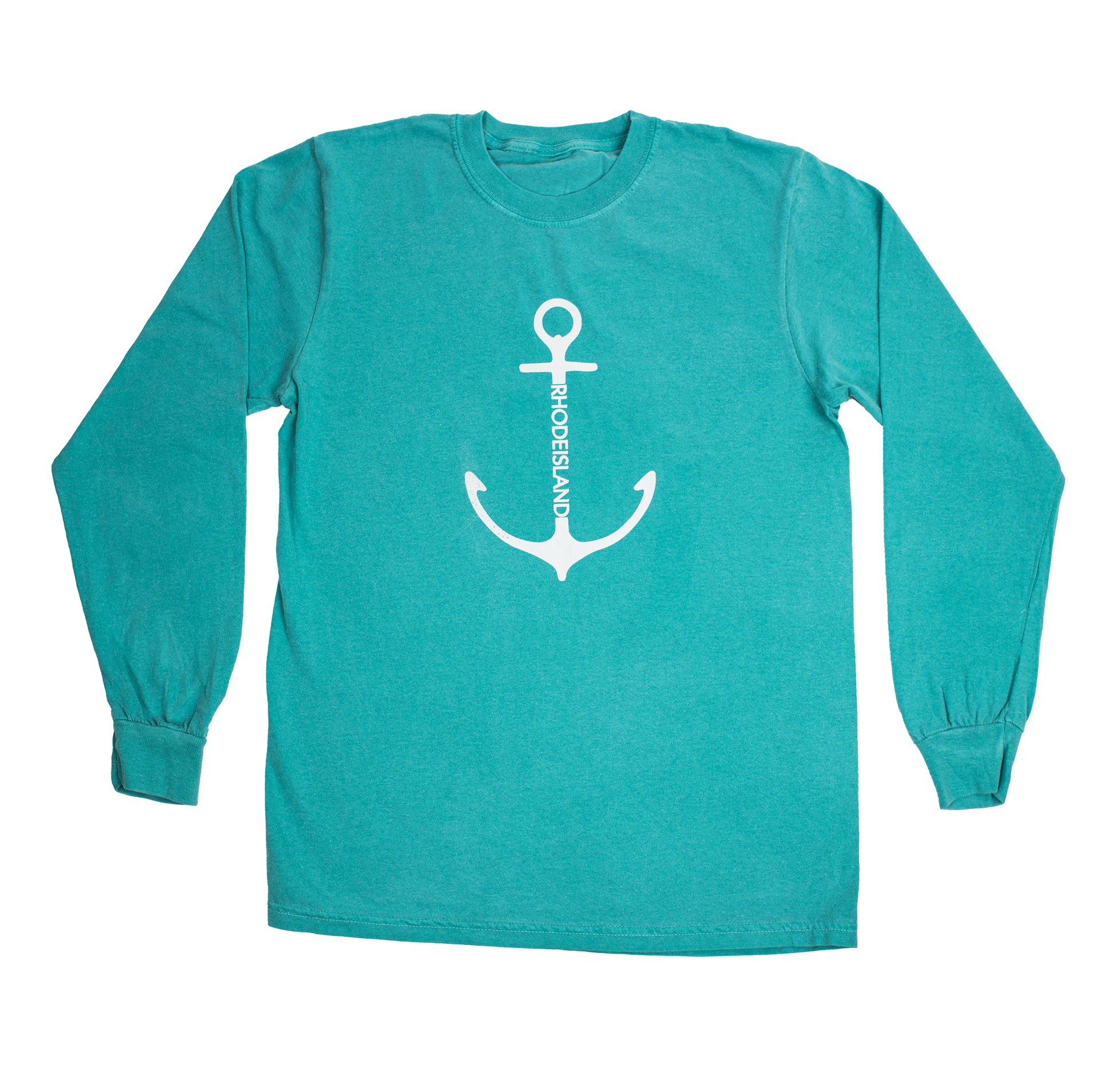 Our classic Rhode Island Anchor design finds itself printed on one of the best long sleeve tees money can buy- Comfort Colors. This fun seafoam long sleeve tee is built to last. Its thick cotton material is heavy enough to feel like a comfy hug but light enough to keep you from sweating. Hand-printed with precision in beautiful Rhode Island.